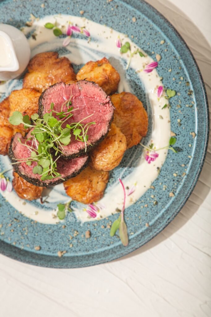 Um dos destaques desta nova fase do empreendimento gastronômico é a entrada dos pratos com carne vermelha como o filé mignon com crosta de ervas, batatinhas ao murro assadas e molho de mostarda dijon com iogurte, e o picadinho de filé mignon com arroz negro, ovo gema mole e farofa panko de alho e castanha de caju.