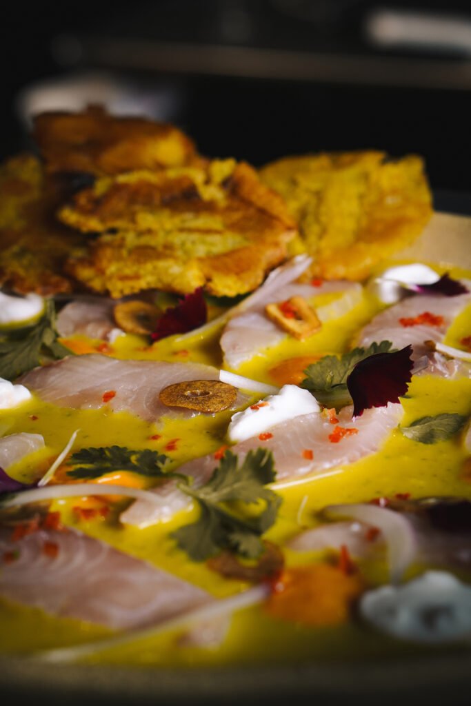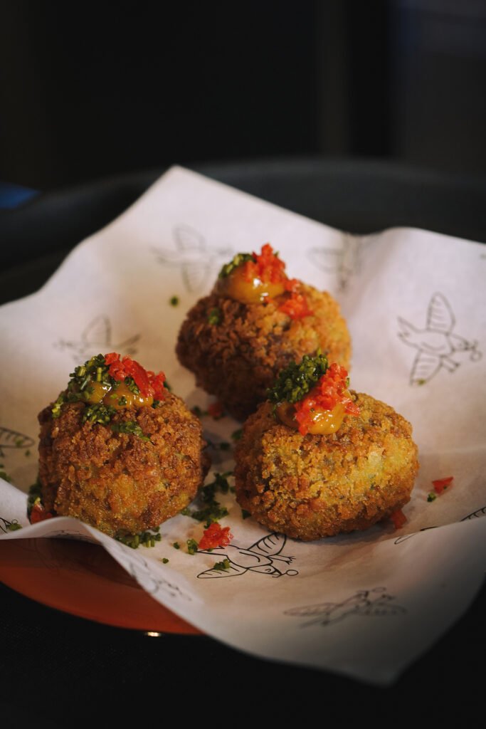 Entre os destaques do menu está o Língua Sandô, um sanduíche de língua bovina empanada no panko, servido com coleslaw e maionese de raiz forte, que tem surpreendido os visitantes. Também surpreendem o Crudo de Sol, uma versão criativa com carne de sol e maionese de manteiga de garrafa, o Tiradito Baiano, sashimi de peixe branco servido com patacones (discos de banana-da-terra verde fritos, um prato popular originário da Colômbia e consumido em diversos países da América Latina), e o Pork n’ Corn, pancetta de porco embebida no chutney de tomate, glace e musseline roxo de milho com beterraba assada.
