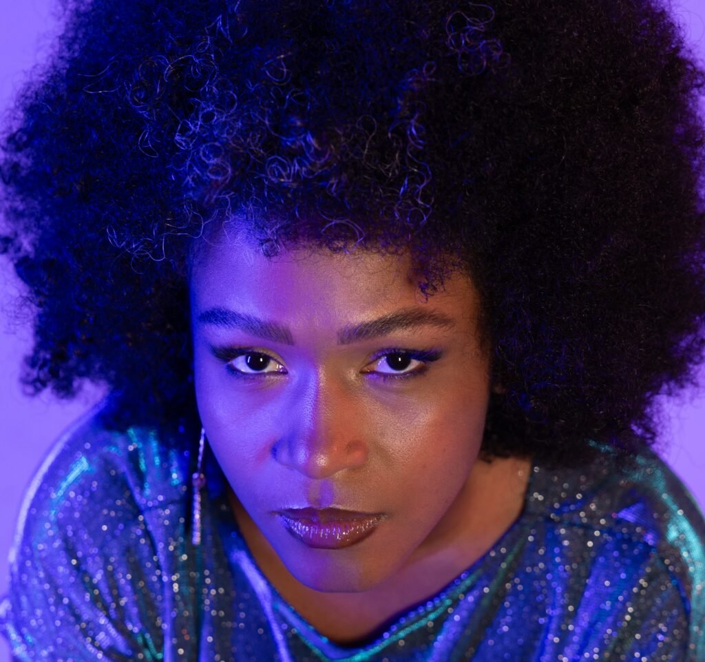 De Teixeira de Freitas, BA, a cantora e pesquisadora mistura synthpop, poética negra e performance crítica em um projeto que tensiona a tropicalidade e afirma o corpo negro como potência criadora.
