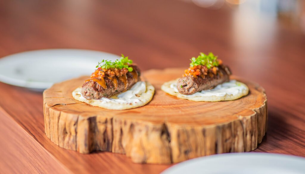 Espigueiro Prato: Kafta & Naan – Pão naan macio, kafta de carne bovina bem temperada, coalhada suave e toque crocante de crispy. Uma combinação equilibrada com inspiração no Oriente Médio.