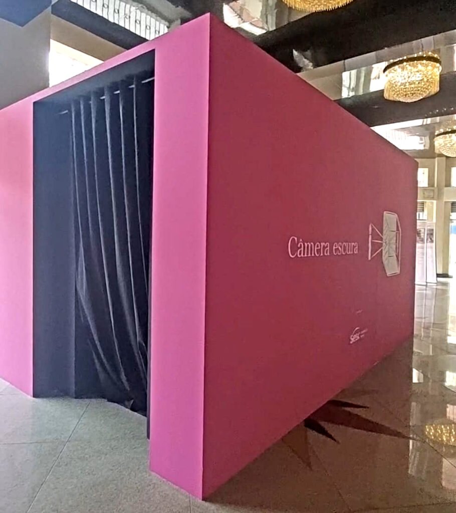 Uma câmera gigante foi instalada no Centro Cultural Sesc Glória para que o público tenha a oportunidade de ingressar no seu interior e, a partir dessa experiência, entender o fenômeno físico que permite a existência da fotografia. A recomendação é que esse espaço seja visitado durante o dia, até às 17 horas, pois depende da luz natural para fazer a “magia” acontecer.